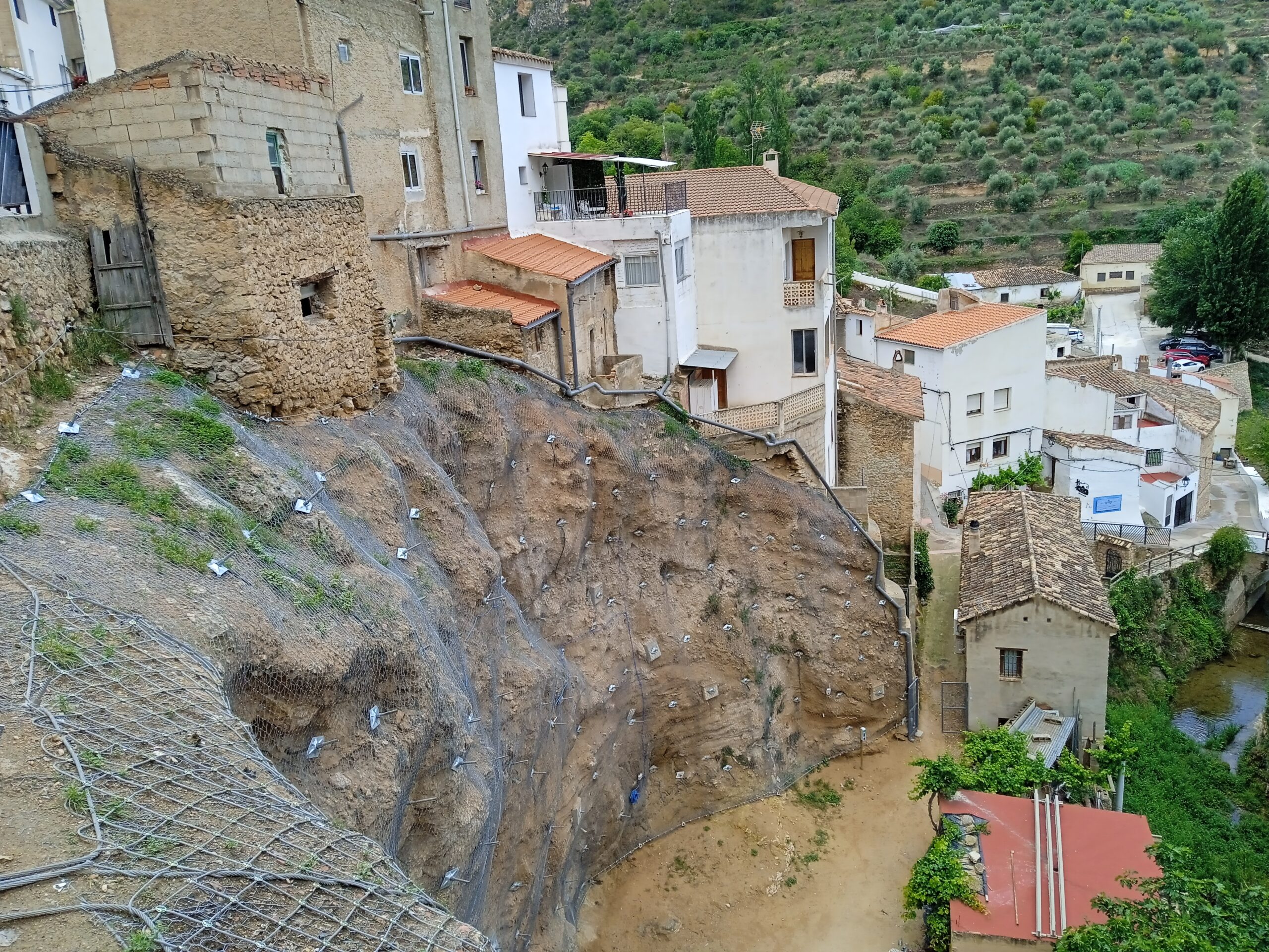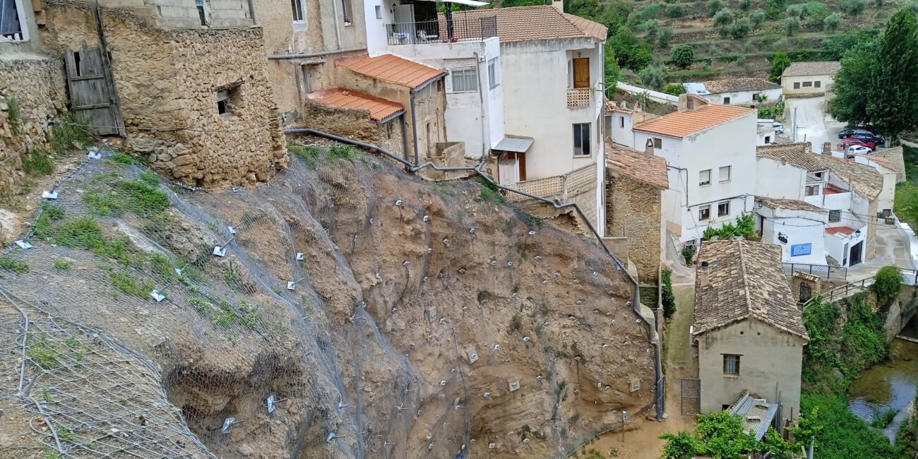 La actuación se desarrolla en el paraje de La Cueva, en el municipio de Molinicos (Albacete), donde los episodios de lluvias asociados a la DANA de 2019 provocaron inestabilidades en la ladera situada junto al núcleo urbano.